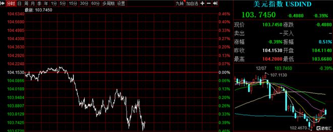 数据公布后,美股高开,纳指涨0.6%,标普500指数涨0.43%,道指涨0.21%。美元指数持续下跌,现报103.745;现货黄金短线拉升,报2037.19美元/盎司。