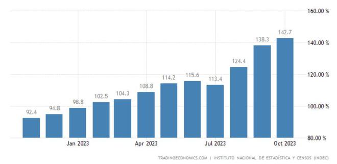 根据最新消息,阿根廷政府的首席发言人Manuel Adorni在当地时间周二早晨透露,新任阿根廷经济部长Luis Caputo将在当地时间晚些时候新政府的经济“休克”(shock)计划。Adorni表示,阿根廷的现状是45%的贫困率和接近200%的通胀率,这个国家正在走向恶性通胀,这些政策的目标正是避免出现这种情况。