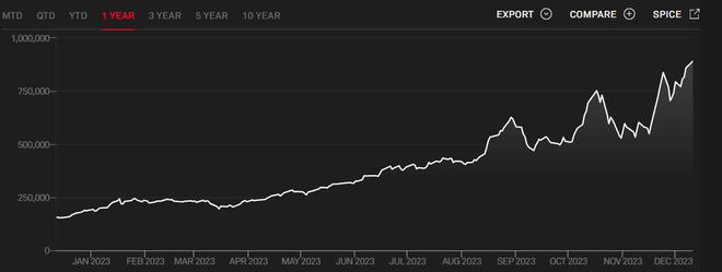 作为阿根廷国内应对通胀的渠道之一,阿根廷主要股指标普MERVAL指数续刷历史新高,该指数年初至今的涨幅超过450%。