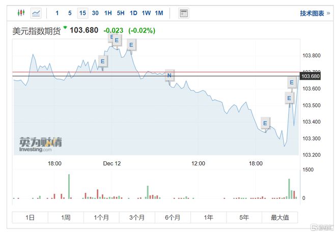 美元指数DXY持续反弹,较CPI数据公布后低点反弹超40点,现报103.68。